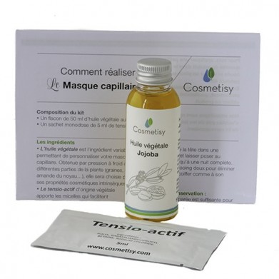 Ce masque capillaire à fabriquer soi-même à l'huile végétale de Jojoba* est adapté à toutes les chevelures qu'il nourrit et protège en gainant le cheveu.